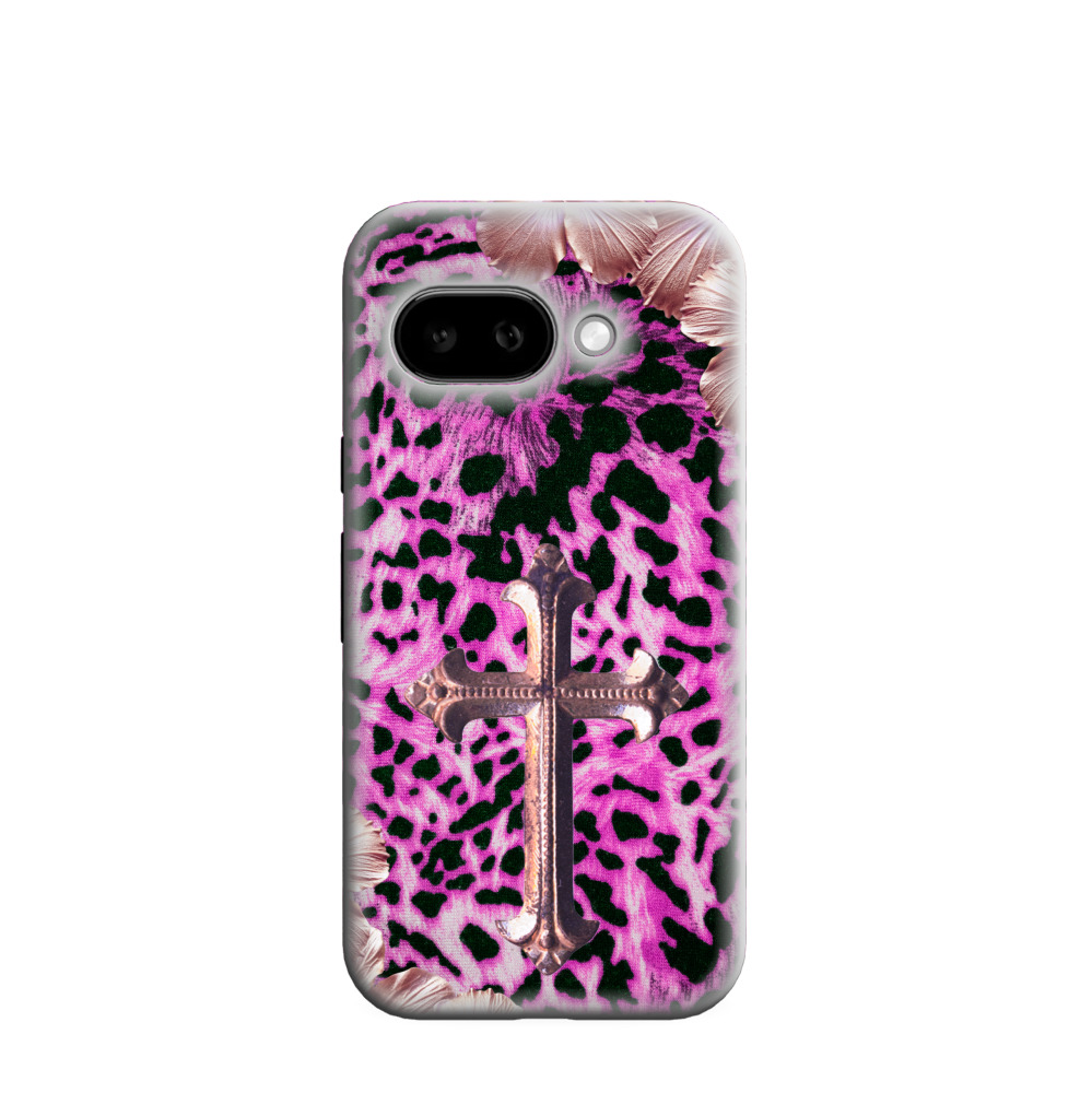 Google Pixel 9a Hybrid (Kunststoff / Gummi) Hülle Neon Leopard Rosee Cross - Pink