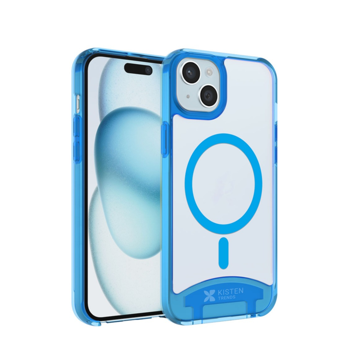 Handyhülle für iPhone 15 mit Handyketten-Adapter magnetisch - Neon Blau