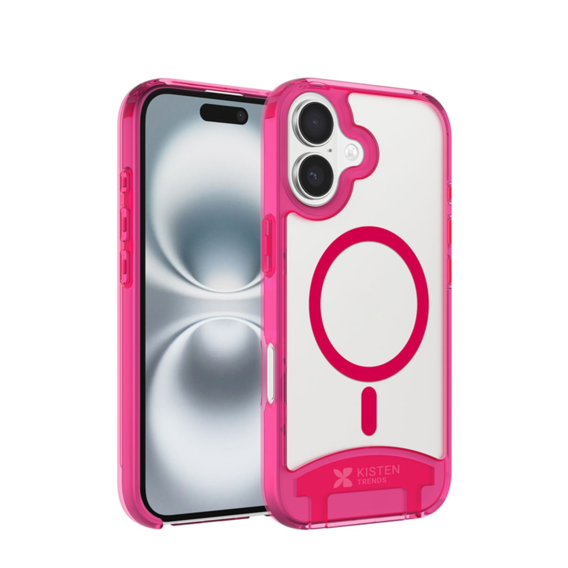 Handyhülle für iPhone 16 mit Handyketten-Adapter magnetisch - Neon Hot Pink