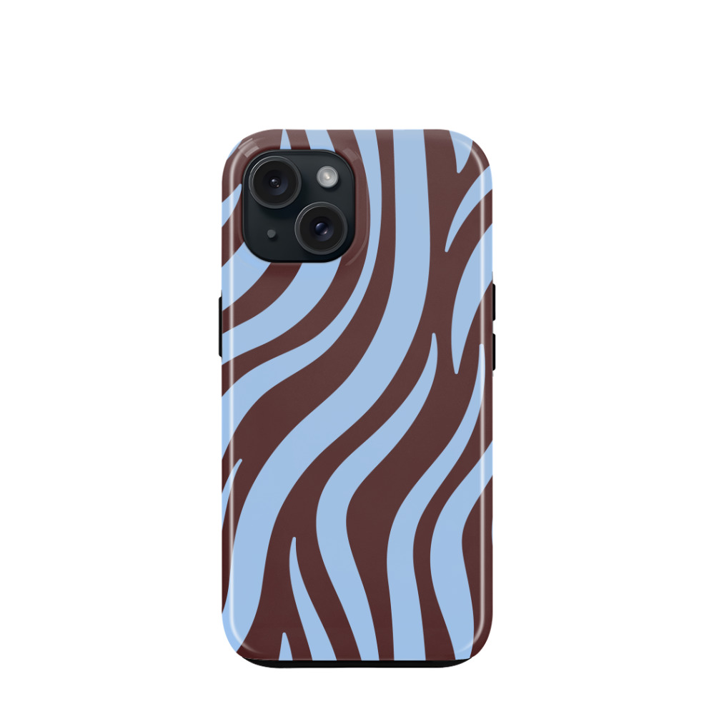 iPhone 15 Hybrid (Kunststoff / Gummi) Hülle Cool Zebra - Blau
