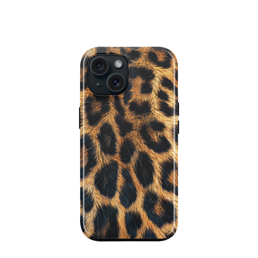 iPhone 15 Hybrid (Kunststoff / Gummi) Hülle Noir Leopard - Braun