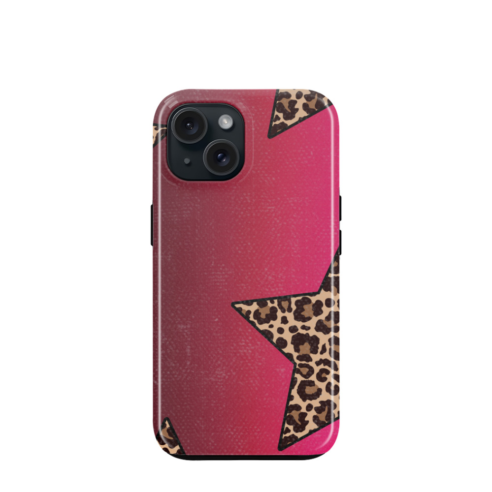 iPhone 15 Hybrid (Kunststoff / Gummi) Hülle Rockstar Leopard - Pink