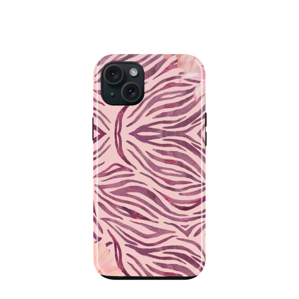 iPhone 15 Plus Hybrid (Kunststoff / Gummi) Hülle Botanical Hibiscus - Rosa
