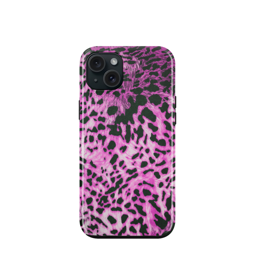 iPhone 15 Plus Hybrid (Kunststoff / Gummi) Hülle Neon Leopard Pop - Pink