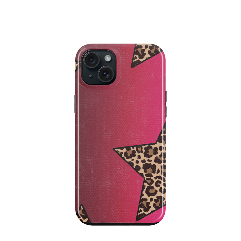 iPhone 15 Plus Hybrid (Kunststoff / Gummi) Hülle Rockstar Leopard - Pink