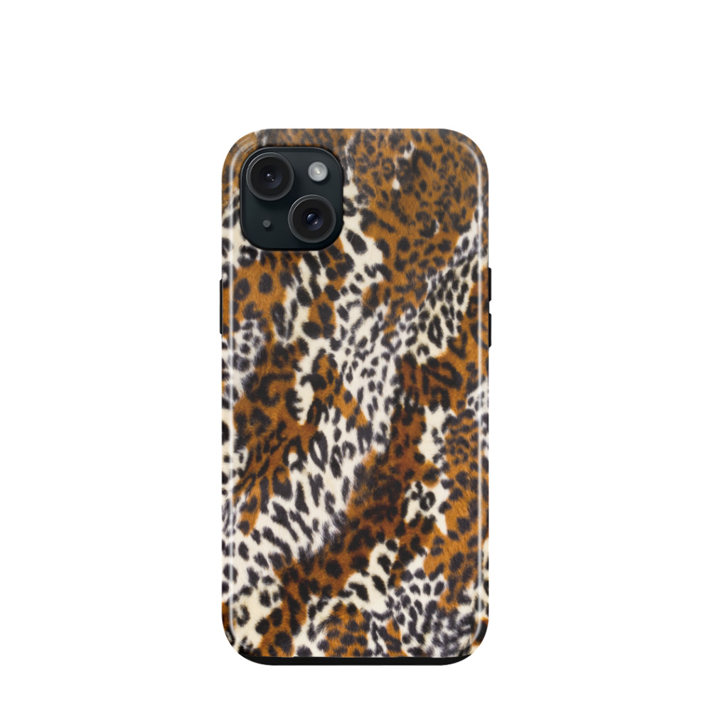iPhone 15 Plus Hybrid (Kunststoff / Gummi) Hülle Tribal Leopard Mix - Orange