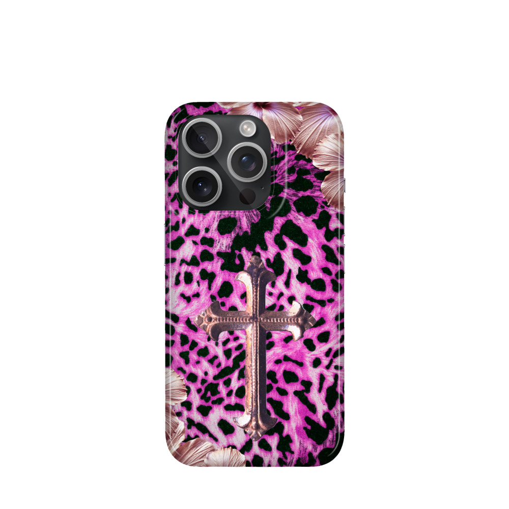 iPhone 15 Pro Kunststoff Hülle Neon Leopard Rosee Cross - Pink