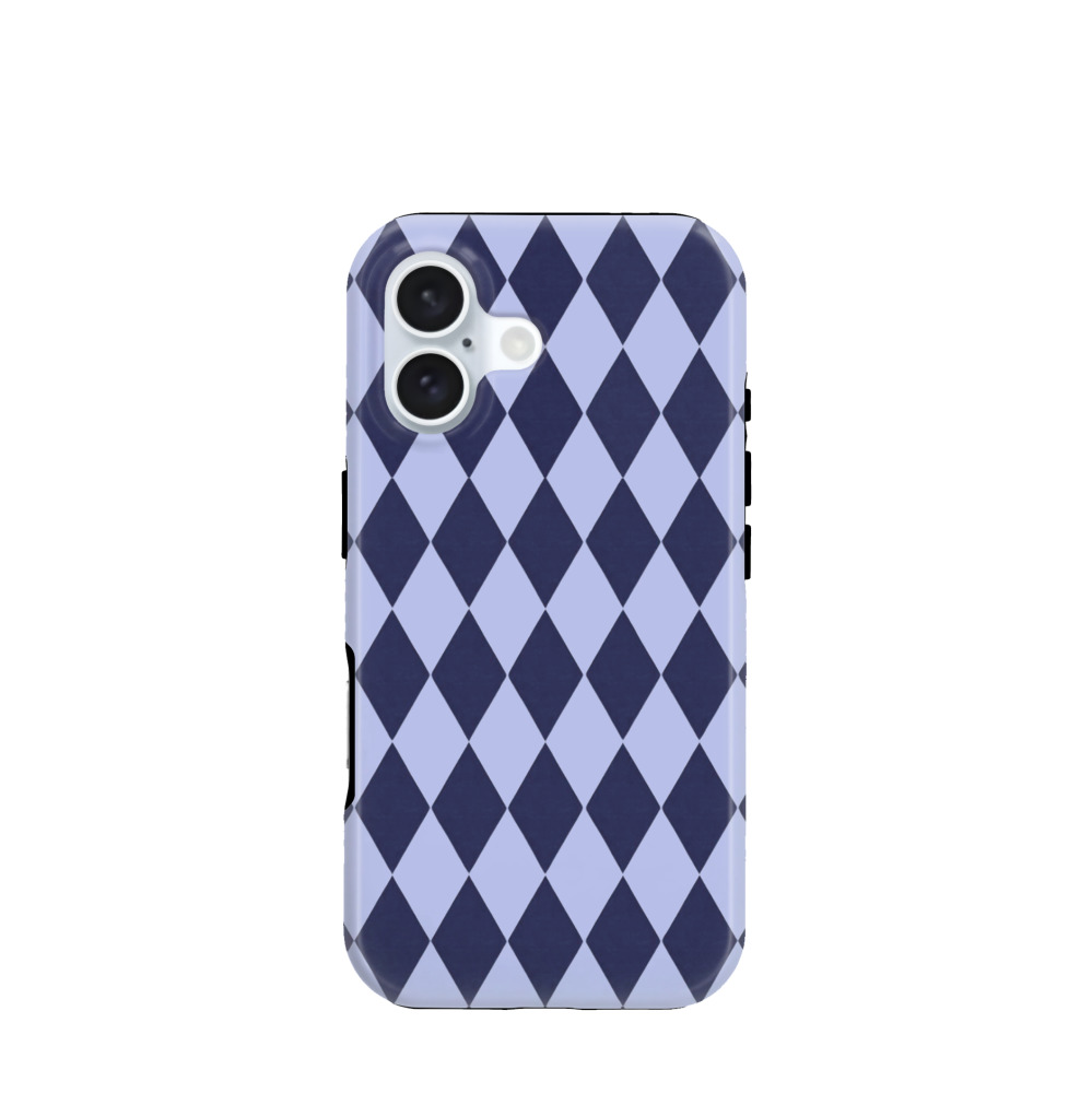 iPhone 16 Hybrid (Kunststoff / Gummi) Hülle Navy Harlequin - Lila-Violett