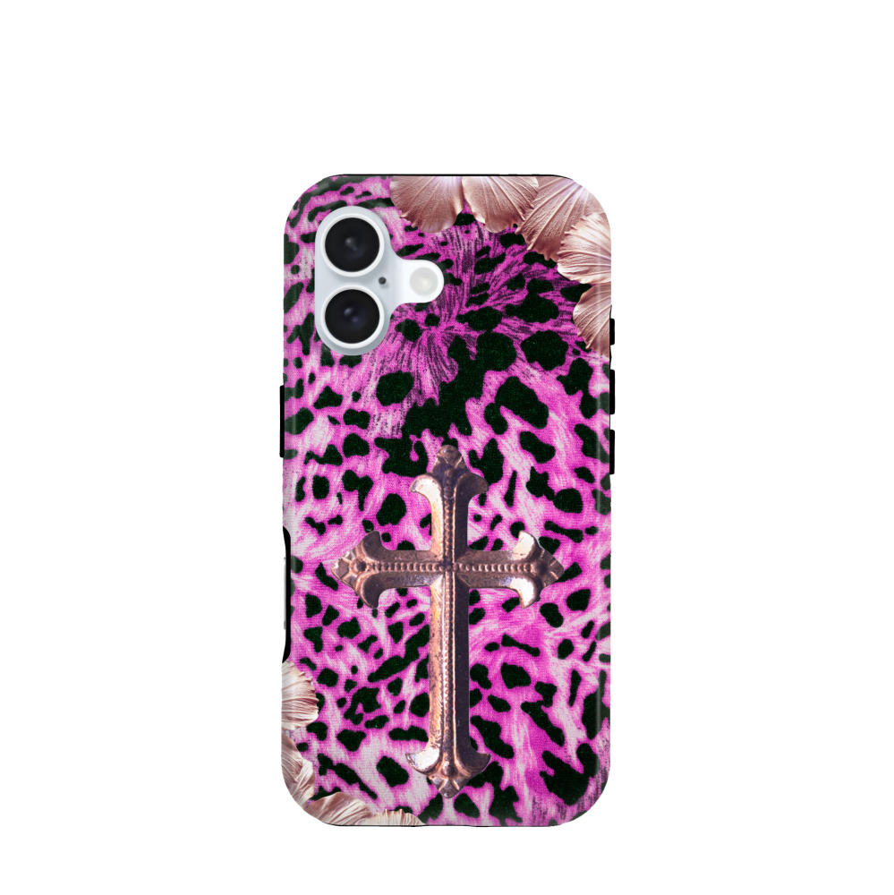 iPhone 16 Hybrid (Kunststoff / Gummi) Hülle Neon Leopard Rosee Cross - Pink