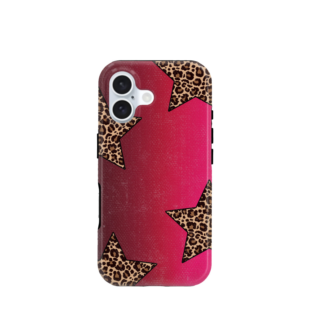 iPhone 16 Hybrid (Kunststoff / Gummi) Hülle Rockstar Leopard - Pink