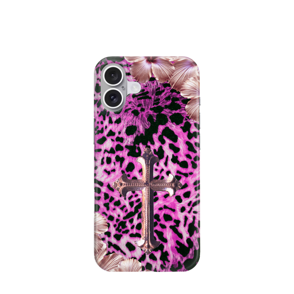 iPhone 16 Plus Kunststoff Hülle Neon Leopard Rosee Cross - Pink