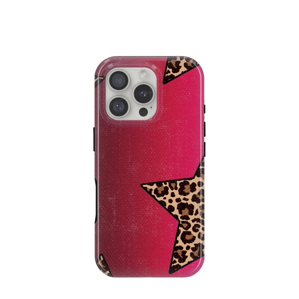iPhone 16 Pro Hybrid (Kunststoff / Gummi) Hülle Rockstar Leopard - Pink