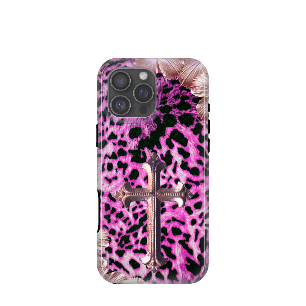 iPhone 16 Pro Max Hybrid (Kunststoff / Gummi) Hülle Neon Leopard Rosee Cross - Pink