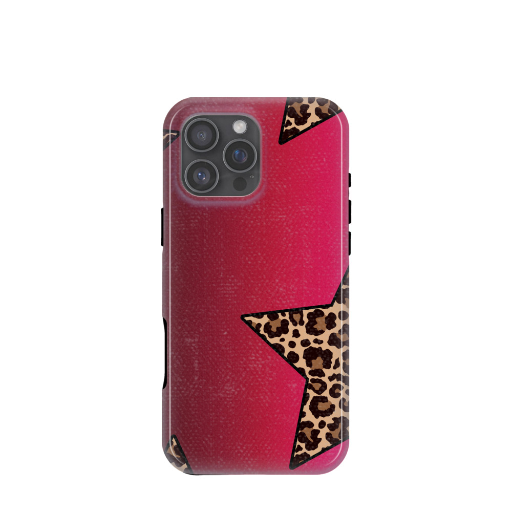 iPhone 16 Pro Max Hybrid (Kunststoff / Gummi) Hülle Rockstar Leopard - Pink