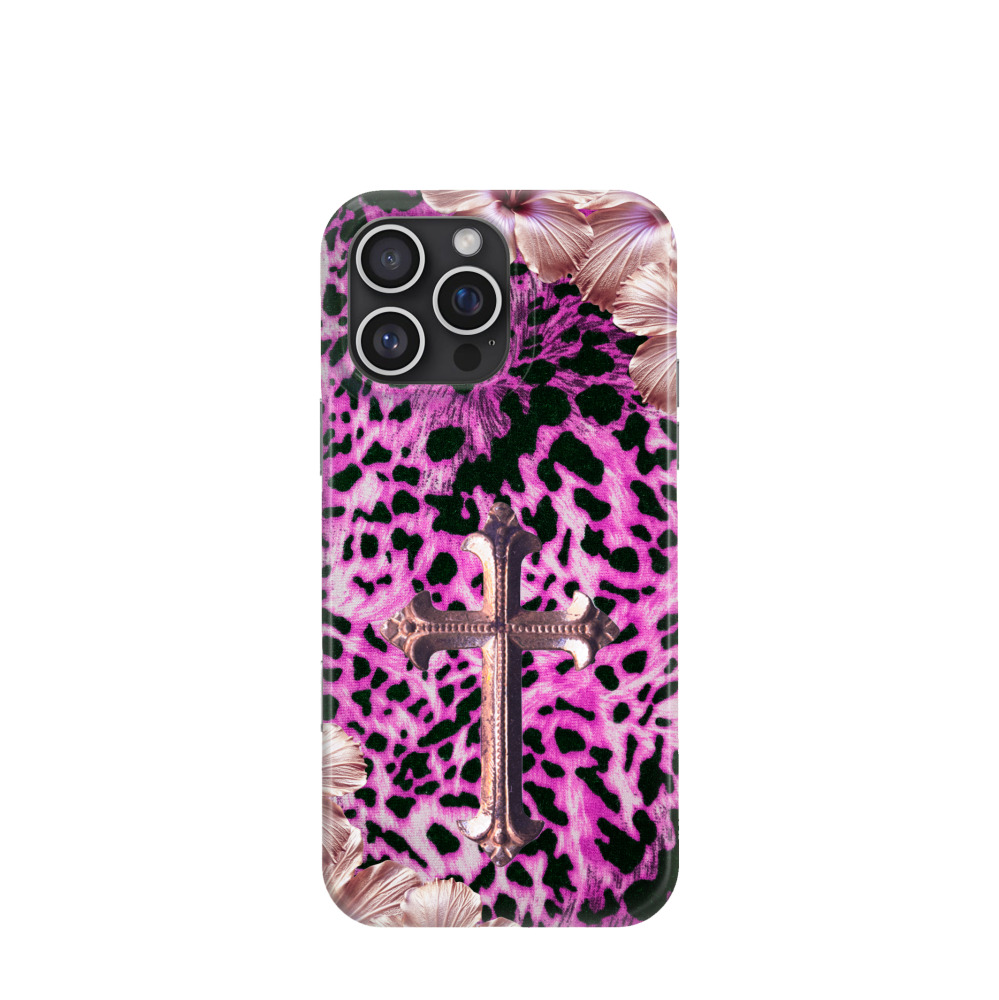 iPhone 16 Pro Max Kunststoff Hülle Neon Leopard Rosee Cross - Pink
