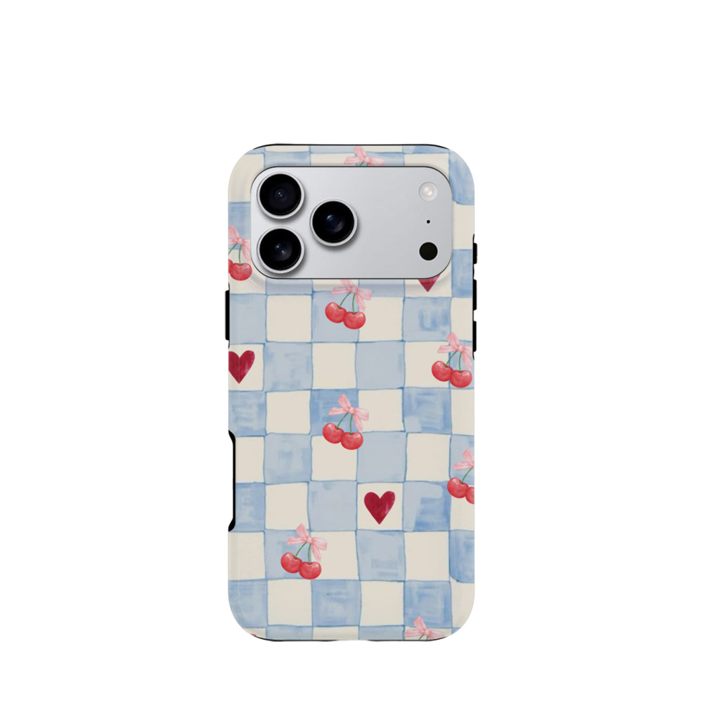 iPhone 17 Pro Max Hybrid (Kunststoff / Gummi) Hülle Sweetheart Cherries - Blau