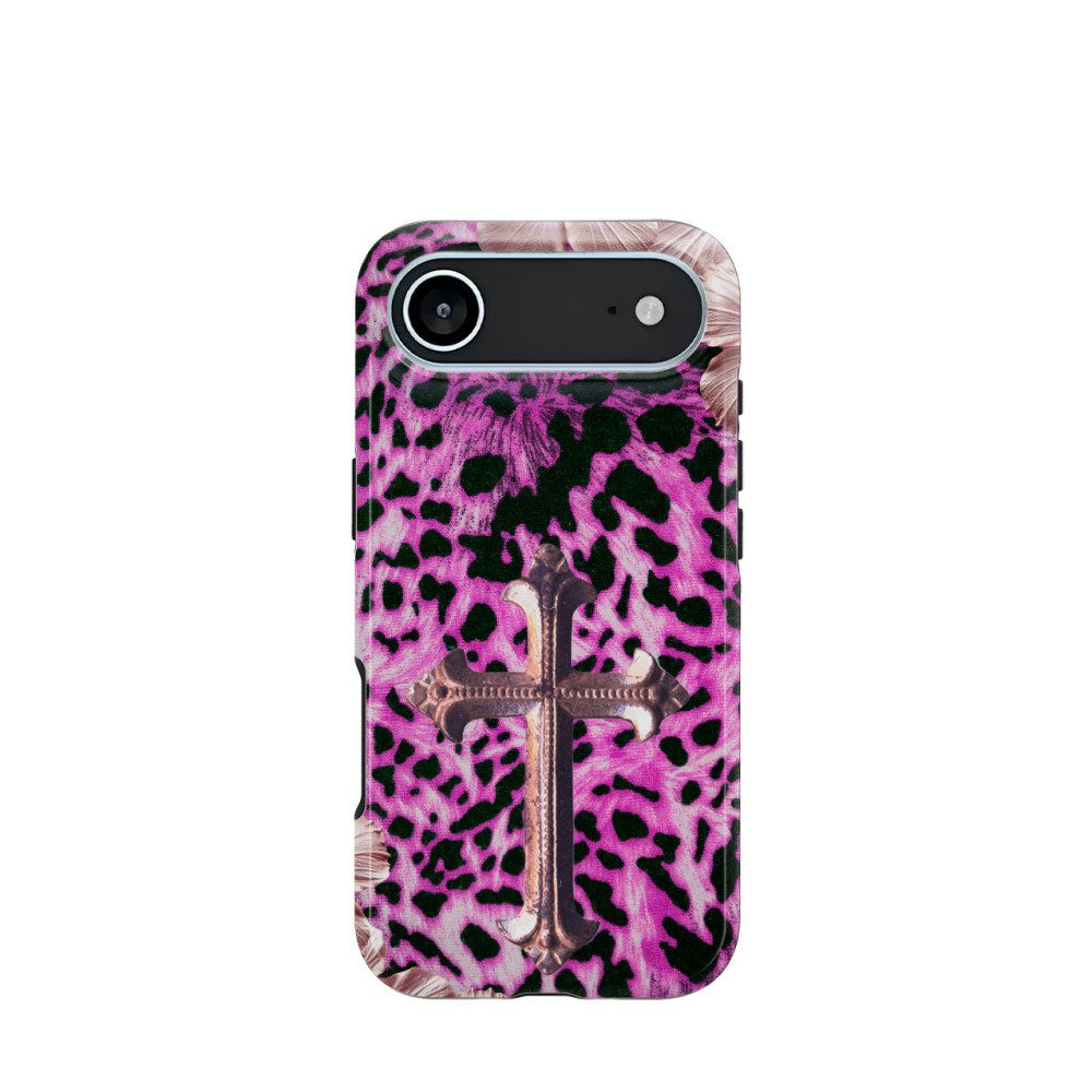 iPhone Air Hybrid (Kunststoff / Gummi) Hülle Neon Leopard Rosee Cross - Pink