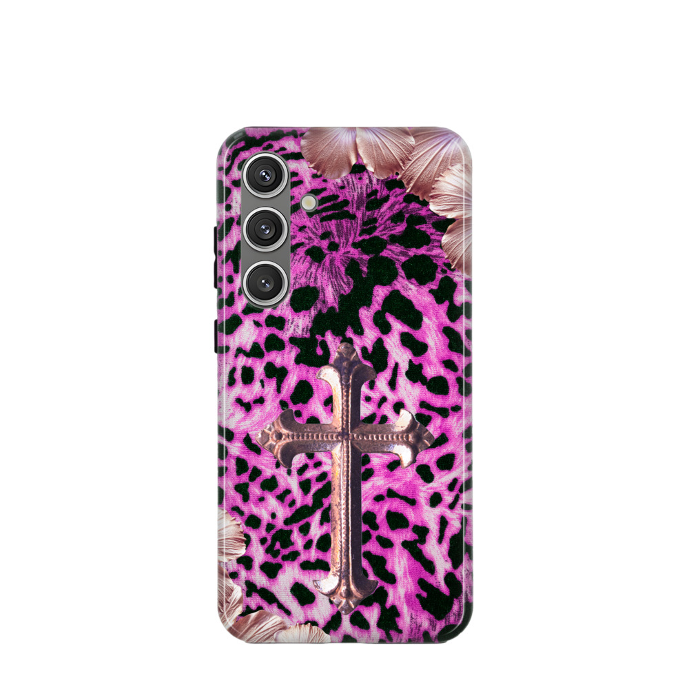 Samsung Galaxy S24 Hybrid (Kunststoff / Gummi) Hülle Neon Leopard Rosee Cross - Pink