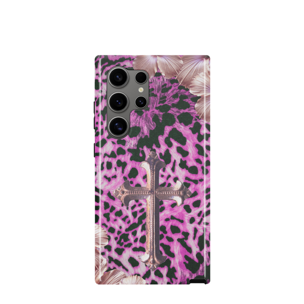Samsung Galaxy S24 Ultra Hybrid (Kunststoff / Gummi) Hülle Neon Leopard Rosee Cross - Pink