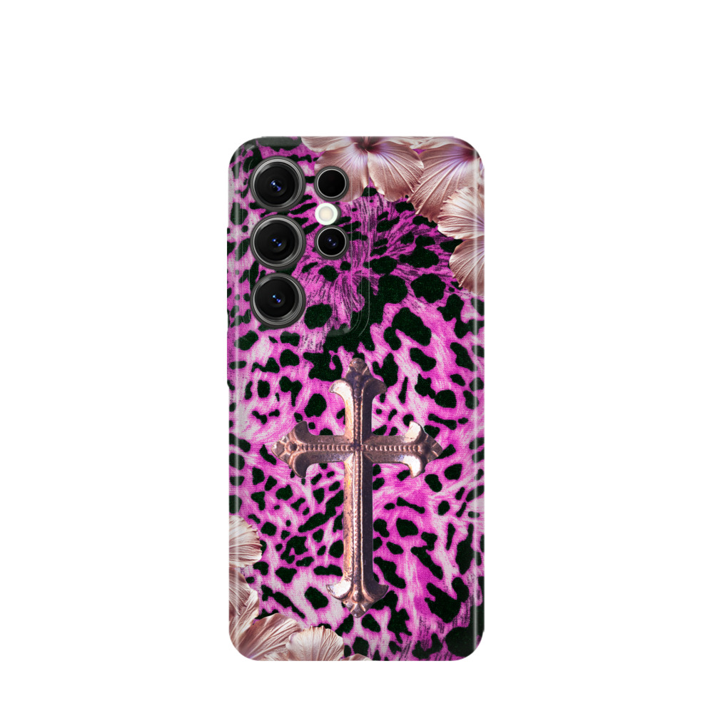 Samsung Galaxy S25 Kunststoff Hülle Neon Leopard Rosee Cross - Pink