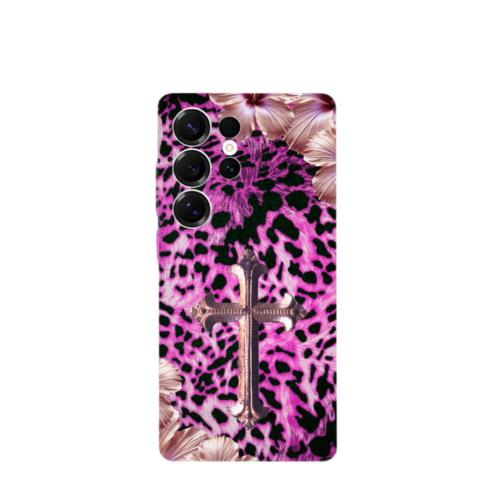 Samsung Galaxy S25 Ultra Kunststoff Hülle Neon Leopard Rosee Cross - Pink