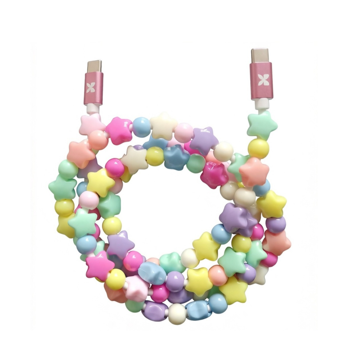 Die handliche Länge von 1 m macht dieses Kabel zur perfekten Lösung, ob zu Hause auf dem Sofa, im Büro oder unterwegs auf Reisen. Das verspielte Sternperlen-Design aus bunten Pastelltönen, mit charmanten Sternen und runden Perlen in Rosa, Gelb, Mint, Lila und Orange, sorgt für einen Look, der garantiert auffällt und deine Geräte in echte Hingucker verwandelt.