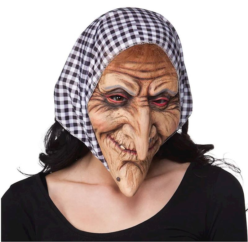 Latex Maske Fasnachts Gesichtsmaske Hexen Kostüm Zubehör Motto Party Accessoire Halloween Foto Requisite inkl. Kopftuch (BO97508)