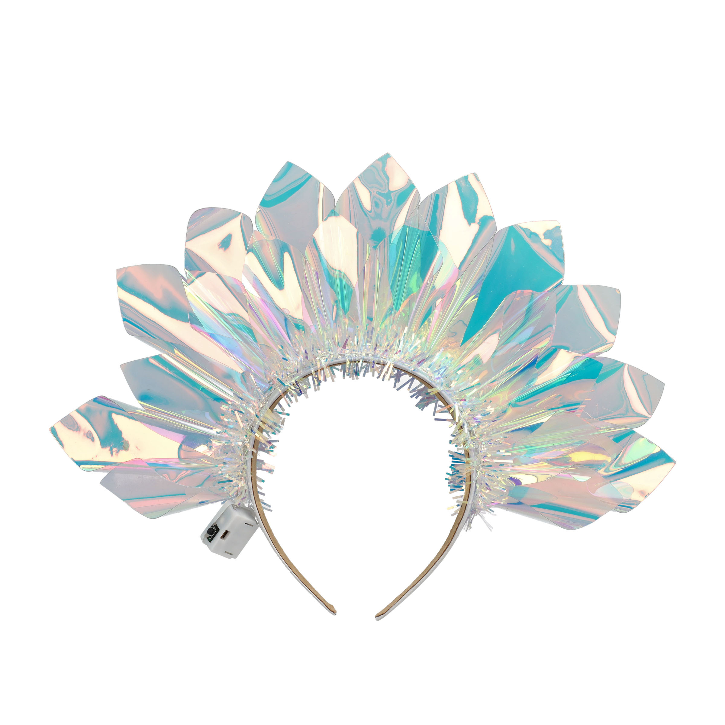 LED Haarreif Krone Fasnacht Kostüm Zubehör Leuchtender Haar Schmuck für Motto Partys / Halloween (inkl. CR2025 Batterie) - Irisierend