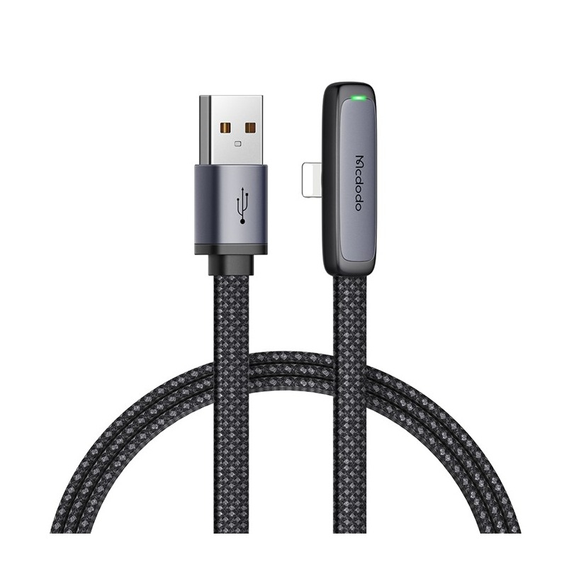 Mache Dir das Leben leichter: Mit dem Lightning Lade- und Datenkabel von Mcdodo hast Du ein Kabel, welches einen festen Platz auf dem Schreibtisch oder in der Aktentasche bekommen kann. Das USB A auf Lightning Ladekabel wird aus einer strapazierfähigen Nylon Ummantelung hergestellt und ist dank der robusten Bauweise besonders langlebig. Der Lightning Anschluss ist im 90 Grad Winkel Design gefertigt und ermöglicht so ein komfortables Aufladen.