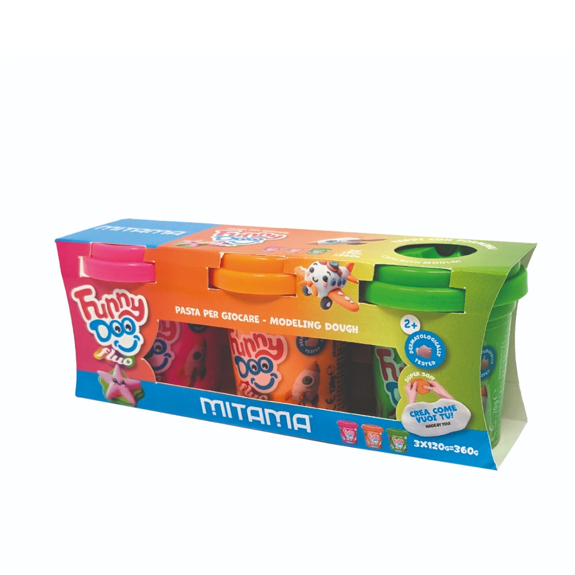 (3er Set) FunnyDoo Kinder Neon Knete DIY Modellier Spielzeug (3910020) - Fluo
