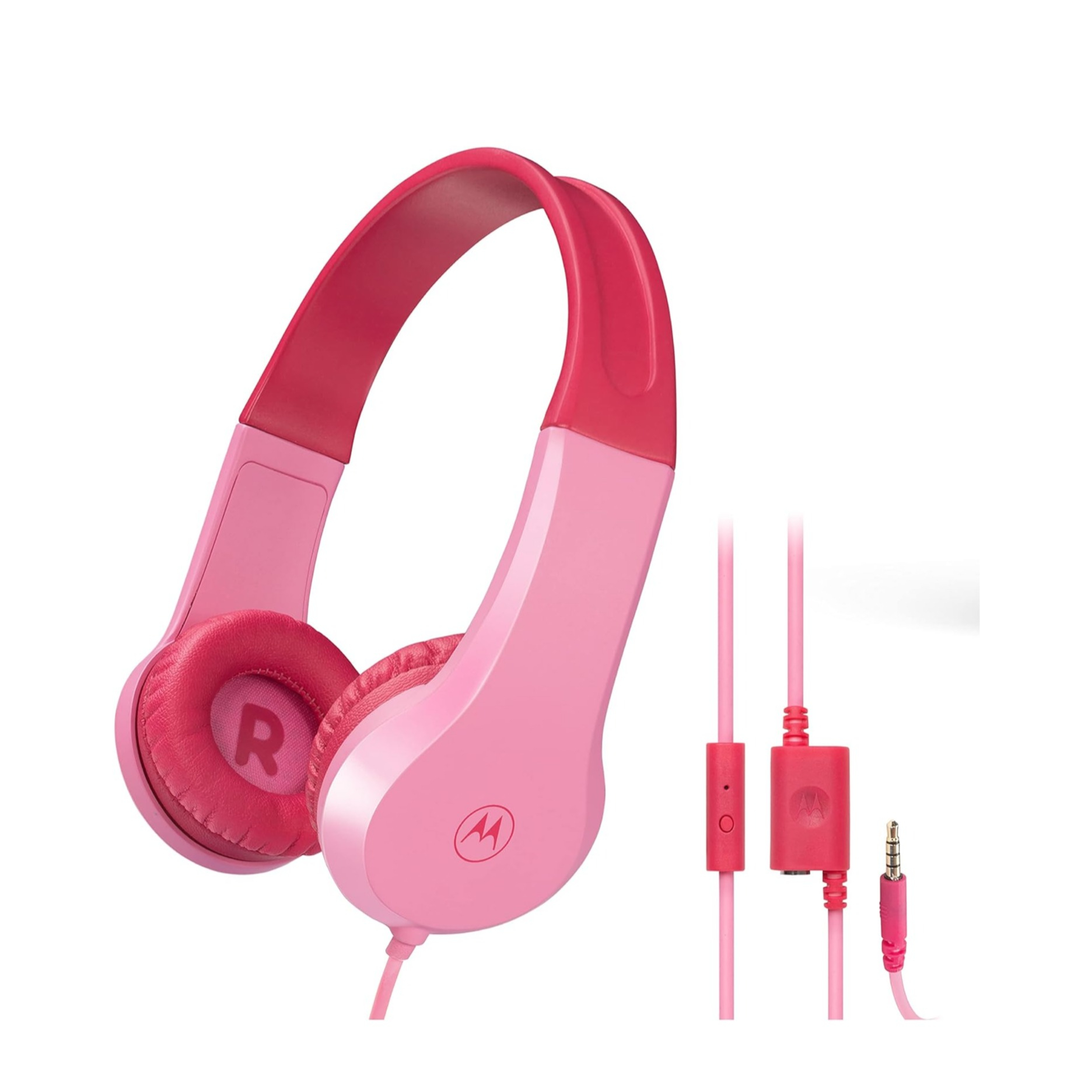 Moto JR200 Kinder Kopfhörer 3.5mm Klinke On-Ear Headset 85dB Begrenzte Lautstärke Grössenverstellbar (JR200PK) - Pink