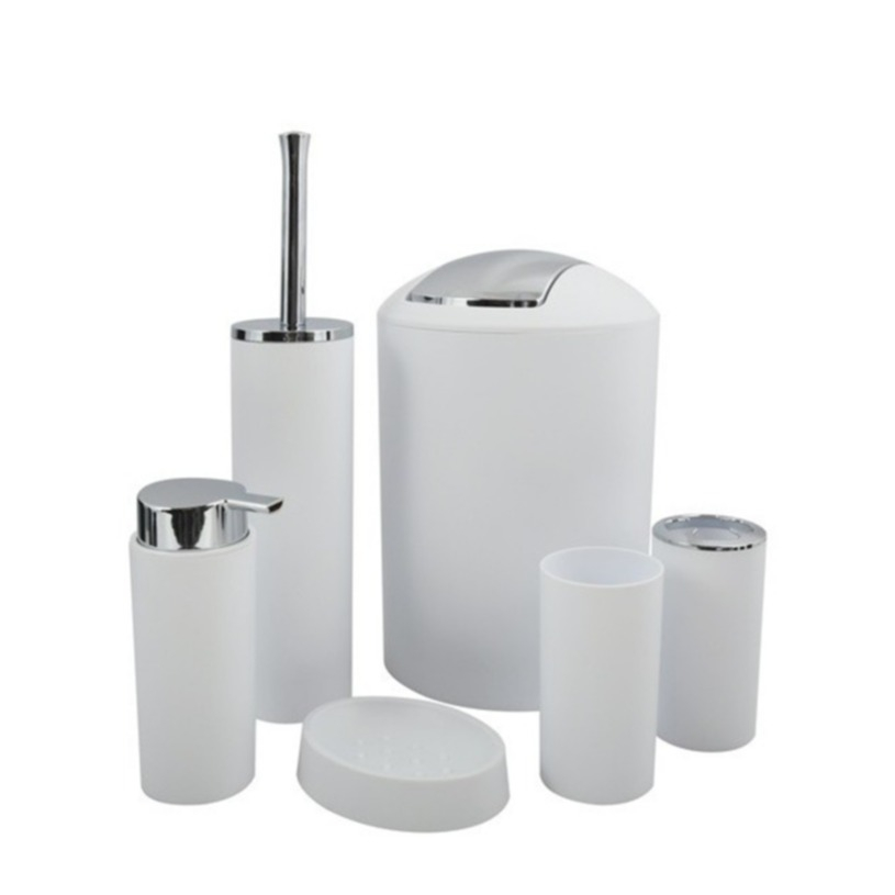 (6-tlg. Set) Hannah Badezimmer Accessoire Bad Essentials inkl. Mülleimer / WC Bürste / Seifenspender (142695) - Weiss