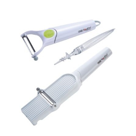 (3-tlg. Set) One Touch Automatischer Gemüse Schäler Obst Peeler Julienne Schneider (inkl. AA Batterien) - Weiss