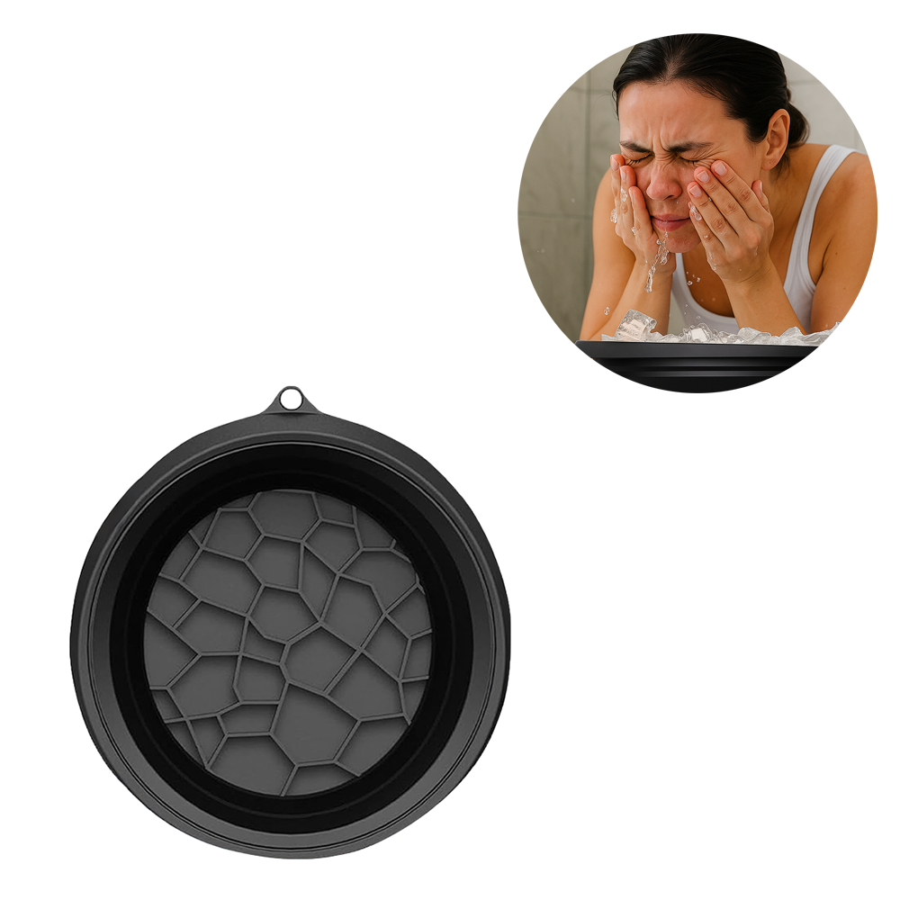 (Ø23cm) Faltbare Silikon Eisbad Schale für Kosmetik Gesichtspflege mit Eiswürfel Form - Schwarz