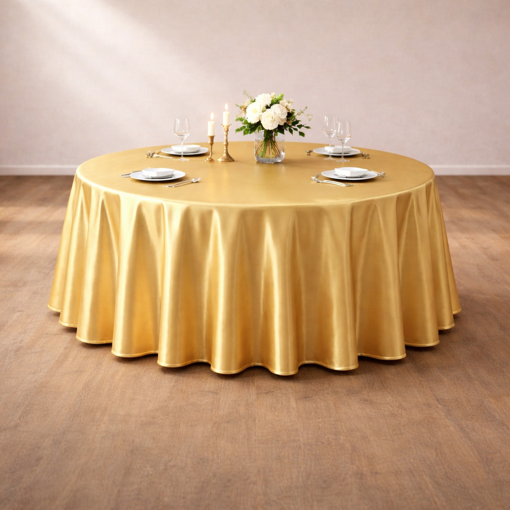 (Ø260cm) Runde Satin Tischdecke Esszimmer Party Deko Bankett Tisch Tuch - Gold