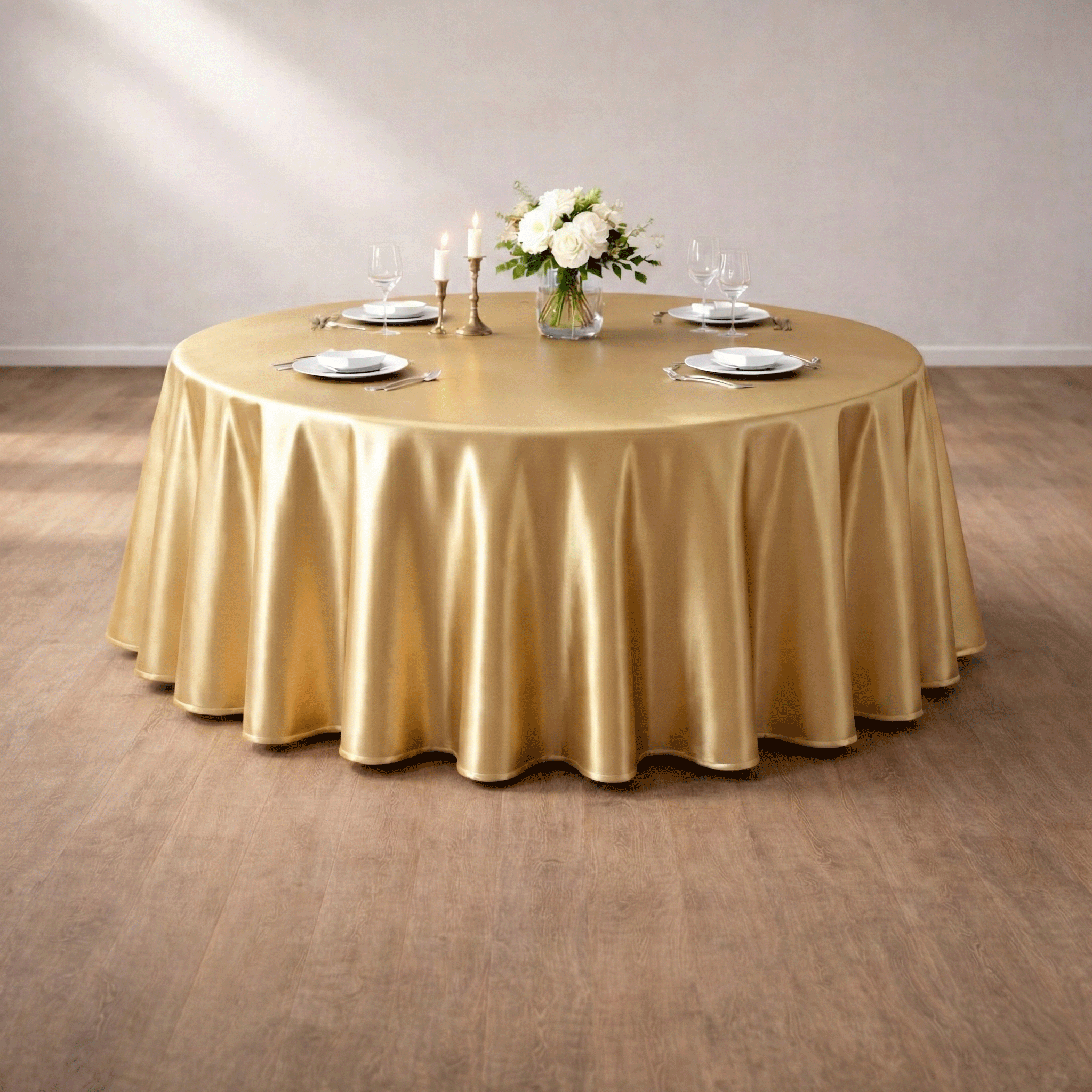 Das weiche Tuch eignet sich optimal für runde Tische und schafft eine fliessende, gleichmässige Optik. Gleichzeitig schützt die Tischdecke deinen Tisch vor Verschmutzungen und Abnutzung. Das schlichte Gold lässt sich vielseitig kombinieren und passt zu unterschiedlichsten Konzepten – von klassisch elegant bis modern und minimalistisch.