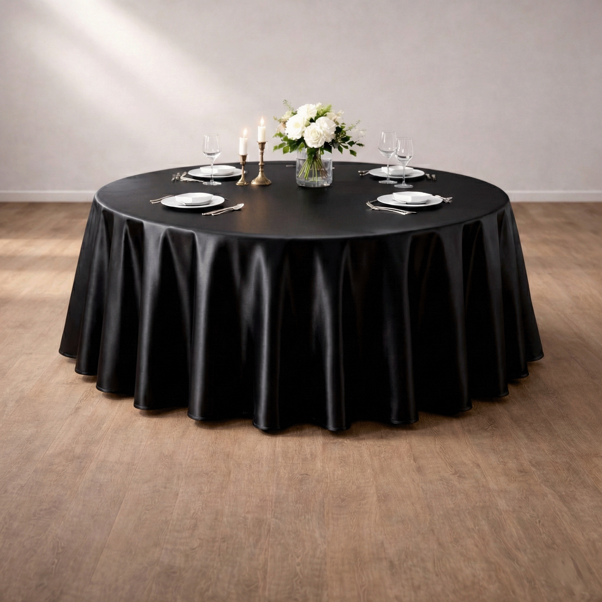 (Ø260cm) Runde Satin Tischdecke Esszimmer Party Deko Bankett Tisch Tuch - Schwarz