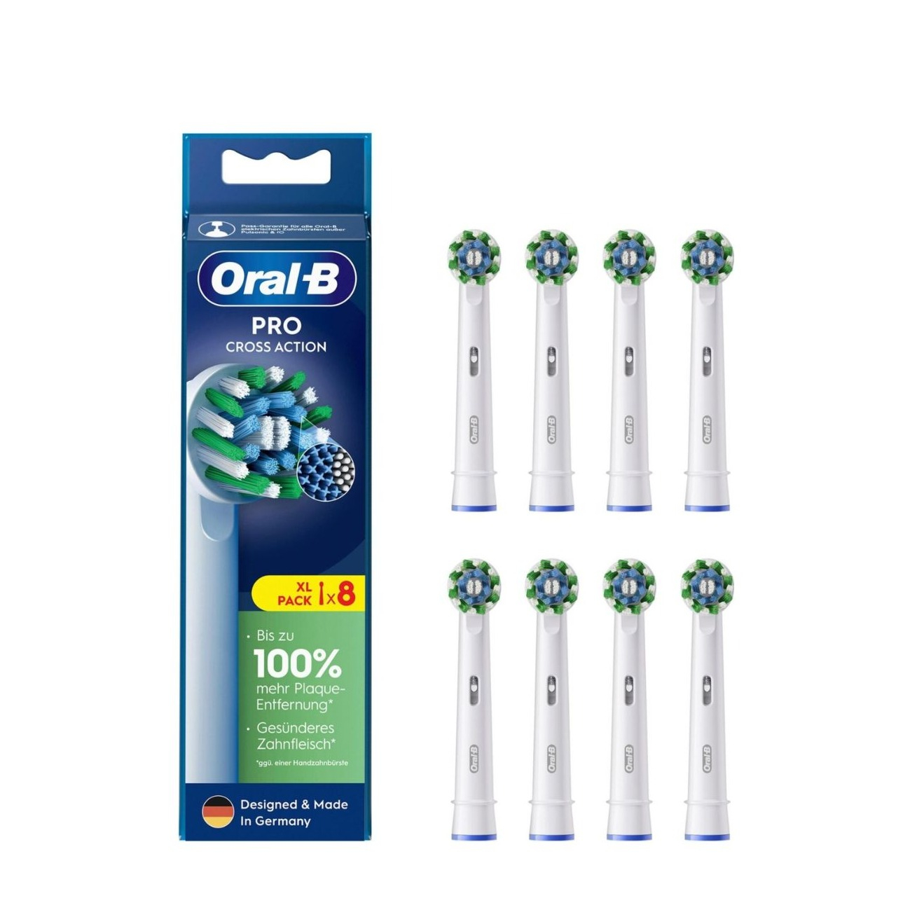 (8er Set) Pro Cross Action Ersatz Zahnbürstenkopf für Oral-B Elektrische Zahnbürsten (860472) - Weiss