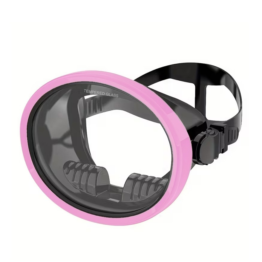Ovale Einglas Schnorchelmaske Vollgesichts Unterwasser Tauch Maske - Rosa / Schwarz