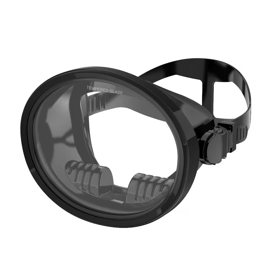 Ovale Einglas Schnorchelmaske Vollgesichts Unterwasser Tauch Maske - Schwarz