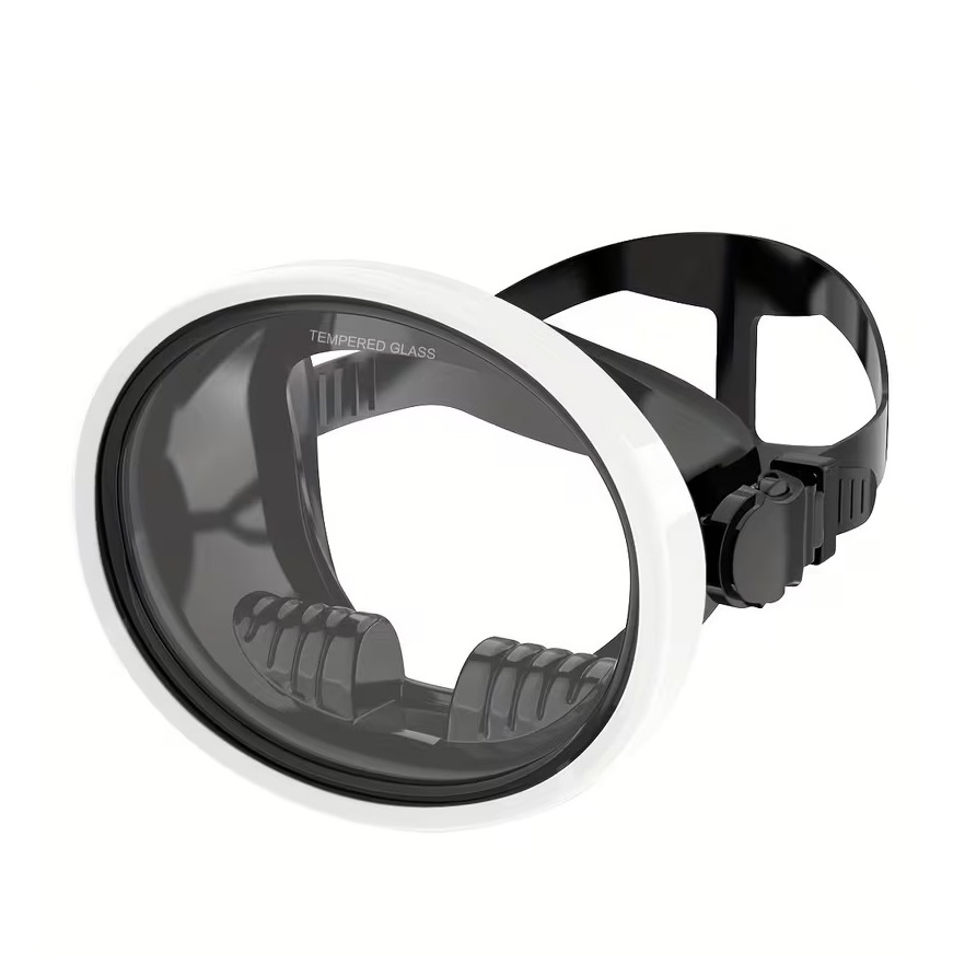 Ovale Einglas Schnorchelmaske Vollgesichts Unterwasser Tauch Maske - Weiss / Schwarz