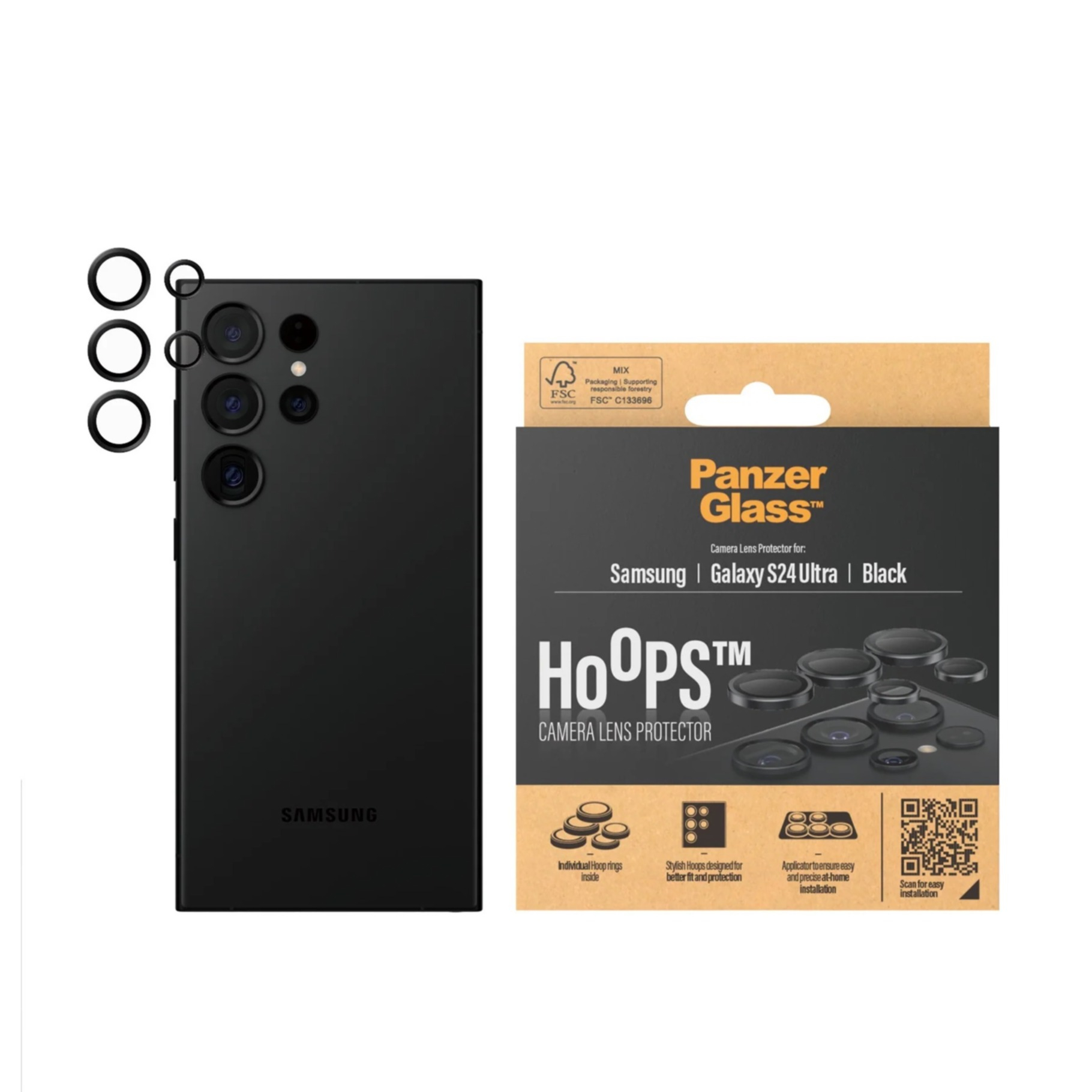 Hoops Samsung Galaxy S24 Ultra Kameraschutz Objektiv Ring Protector Abdeckung (1209) - Schwarz