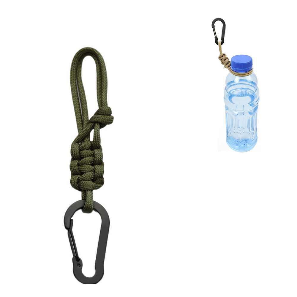 Paracord Flaschen Halter Camping Wander Getränke Trageschlaufe mit Karabiner - Grün