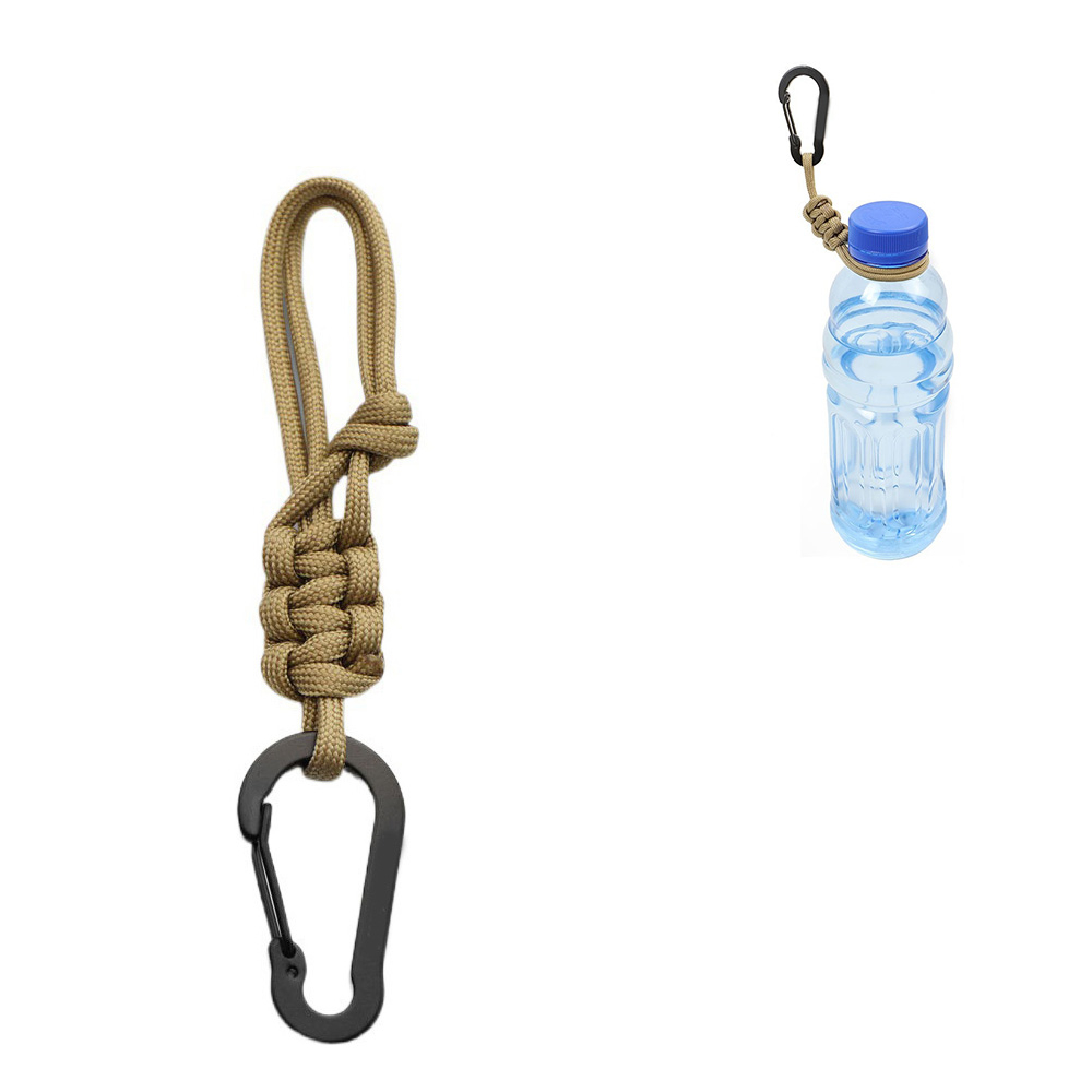 Paracord Flaschen Halter Camping Wander Getränke Trageschlaufe mit Karabiner - Braun