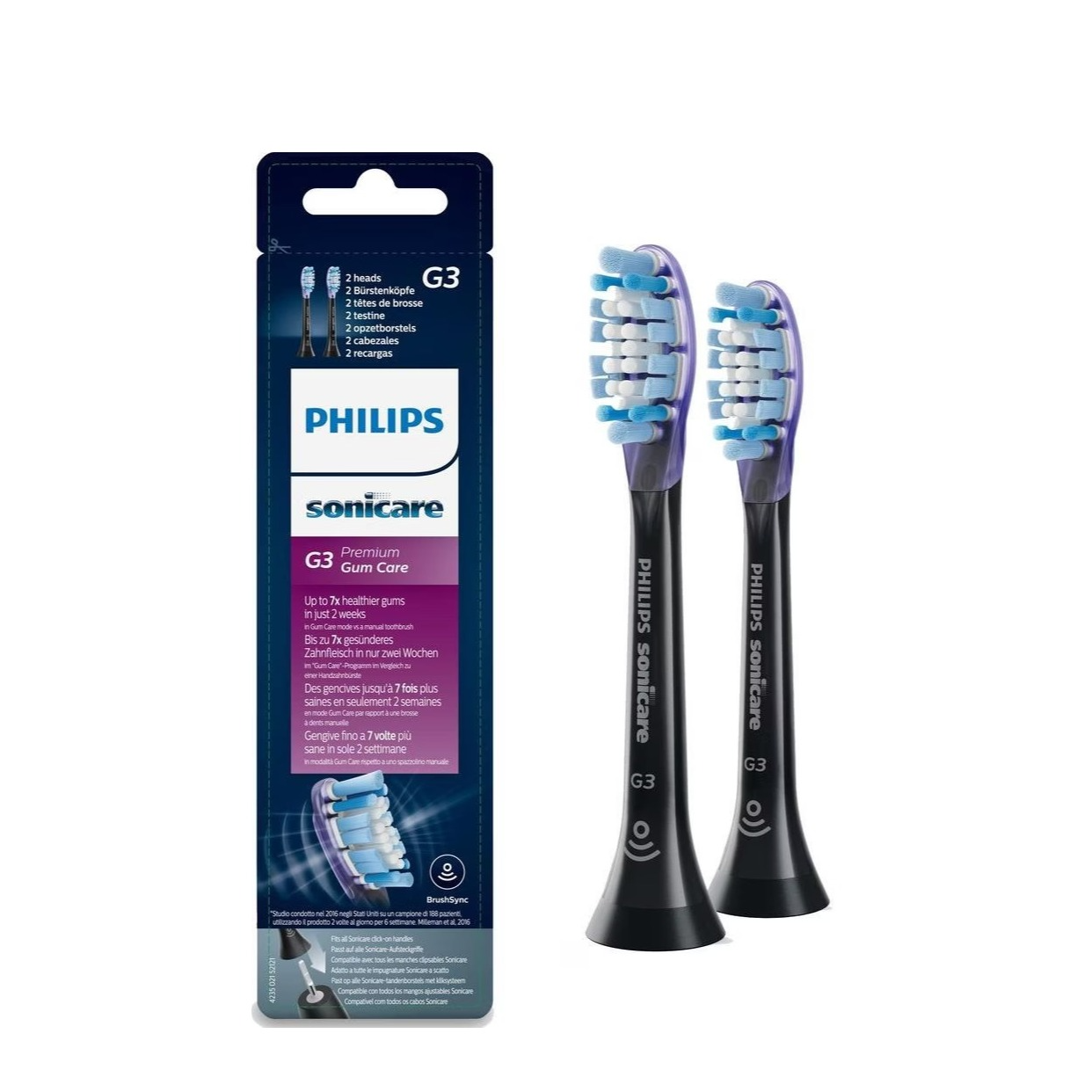 (2er Set) G3 Premium Gum Care Ersatz Zahnbürstenkopf für Philips Sonicare Elektrische Zahnbürsten (HX9052/88) - Schwarz