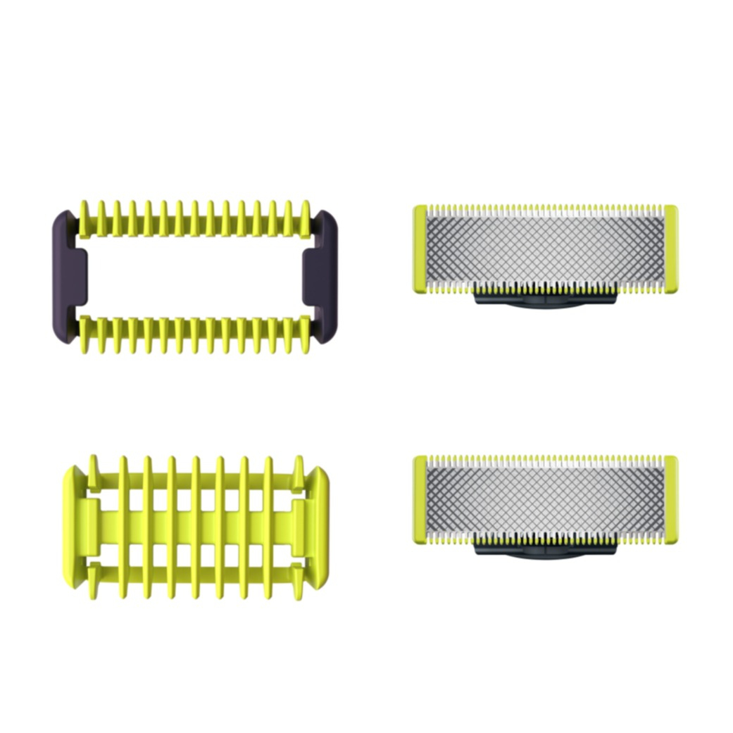 (2er Set) OneBlade Original Trimmer Ersatz Rasierklinge mit 2 Aufsätzen (QP620/50) - Schwarz / Grün