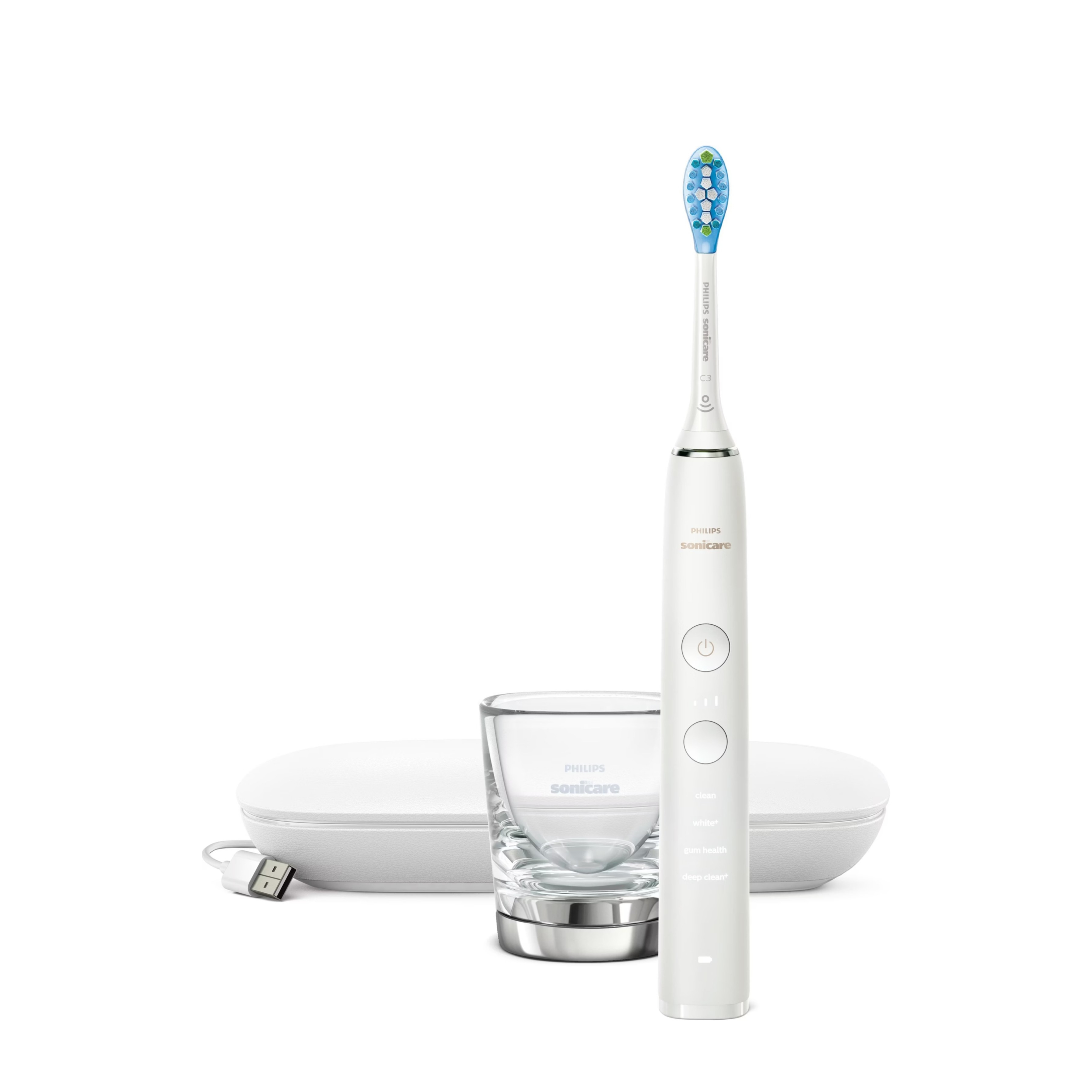 Sonicare DiamondClean 9000 Elektrische Zahnbürste Schallzahnbürste mit Induktiver Ladestation + Reise Lade Case (HX9911/27) - Weiss