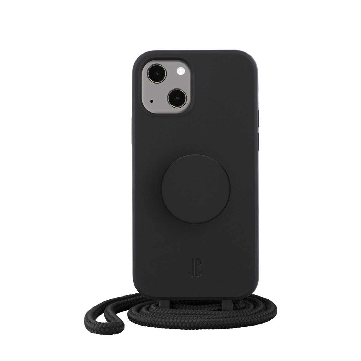 (by Just Elegance) iPhone 14 Plus PopGrip 3in1 Necklace Gummi Hülle + Handykette (150cm) + PopSockets (30149) - Schwarz