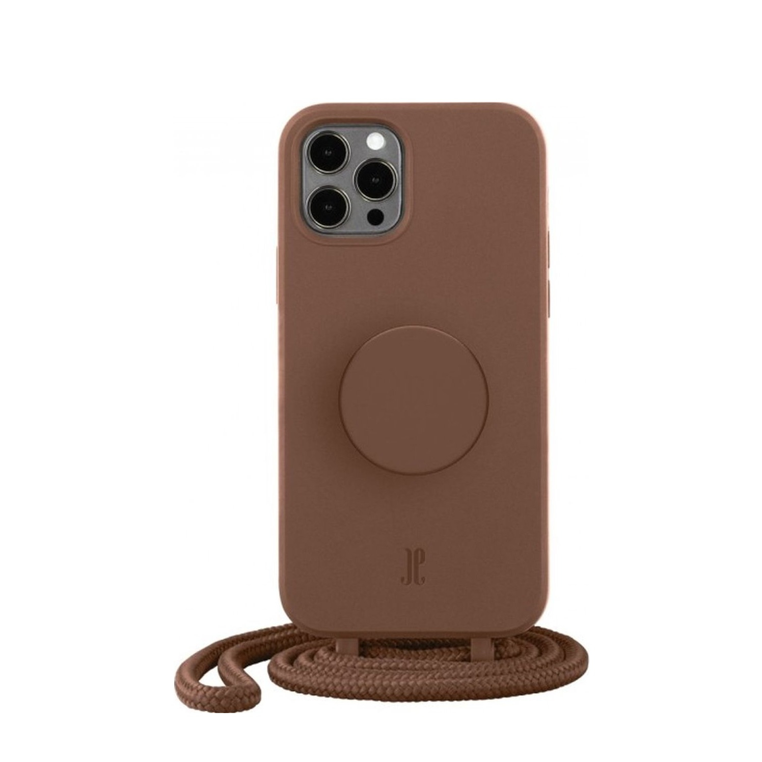 (by Just Elegance) iPhone 14 Pro PopGrip 3in1 Necklace Gummi Hülle + Handykette (150cm) + PopSockets (30147) - Braun