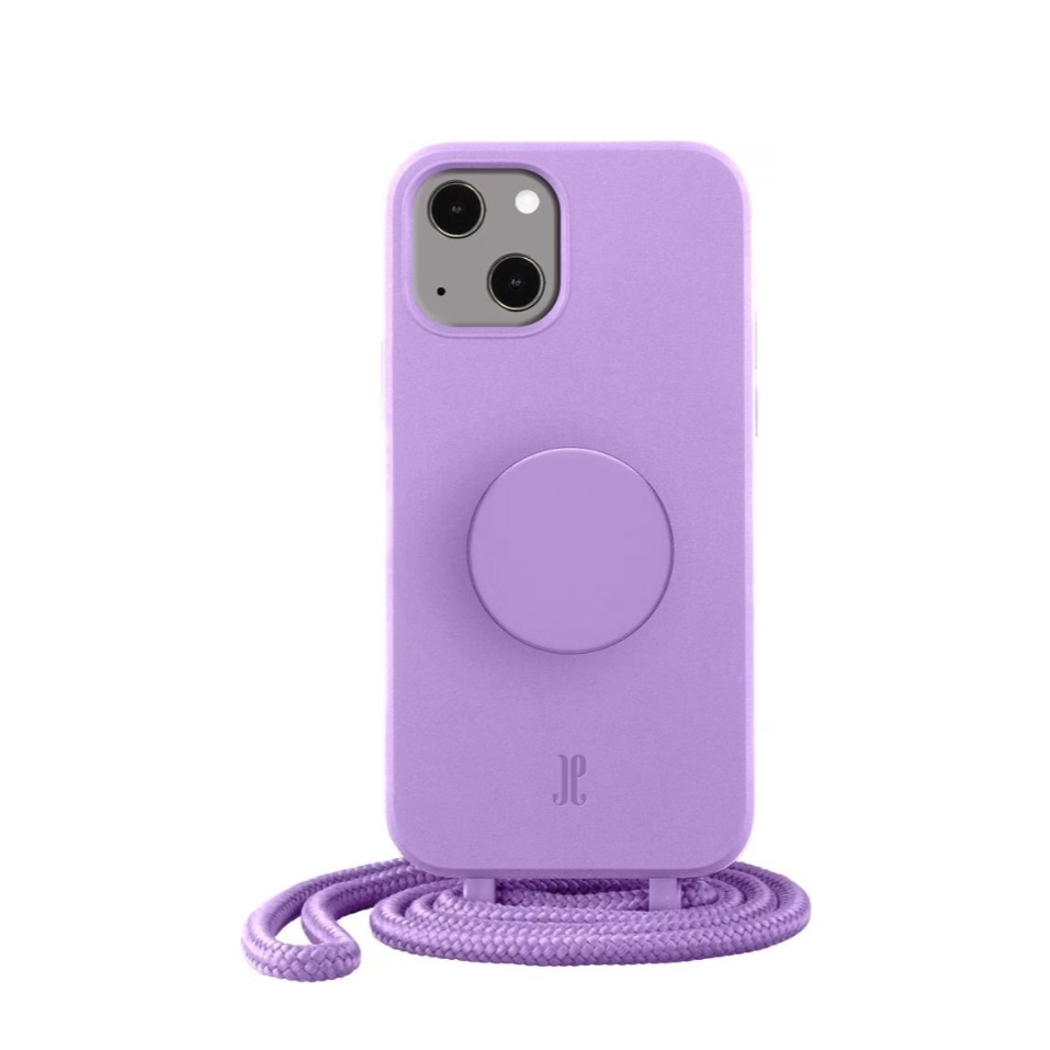 (by Just Elegance) iPhone 13 PopGrip 3in1 Necklace Gummi Hülle + Handykette (150cm) + PopSockets (30132) - Lavendel